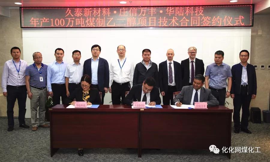 2017年9月,內蒙古久泰集團100萬噸乙二醇項目與華陸科技簽訂項目工程設計合同。內容包括除空分裝置、氣化裝置、變換裝置、低溫甲醇洗裝置之外的全部工藝裝置、公用工程、輔助設施工程以及項目總體設計工作。