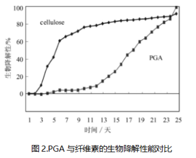 聚乙醇酸(PGA)又稱作聚羥基乙酸,是最簡單的線性脂肪族聚酯,也是一種剛性的高結晶熱塑性聚合物(45~55%),其熔點溫度接近 231℃,玻璃化轉變溫度在 35~40 ℃左右。由于其高結晶度和分子鏈結構,賦予其很多優異的性能。